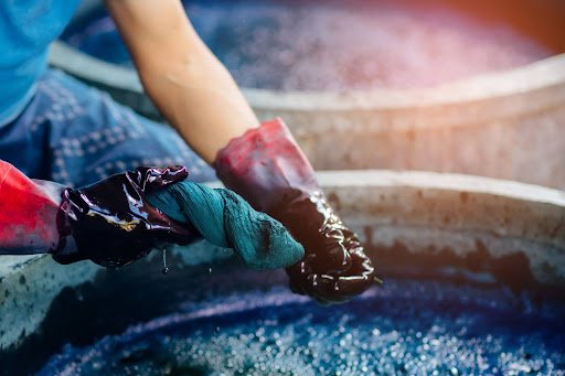 O uso de corantes e produtos químicos no processamento dos tecidos e metais pode levar à contaminação das águas, afetando a saúde humana e a biodiversidade aquática.