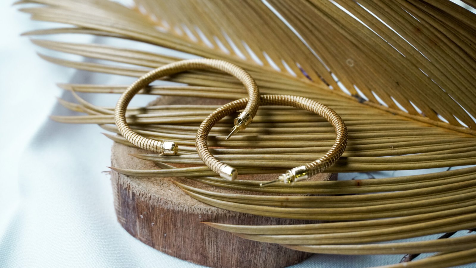 Par de argolas de capim dourado extremamente leves, duráveis e perfeitas para compor o look do verão, seja na praia, na piscina ou em uma festa! As argolas Gisela não são pequenas e nem muito grandes. São as escolhidas para compor um look em um dia de trabalho que se estende para um happy hour . Ficam perfeitas em composições com argolas menores em outros furos da orelha.