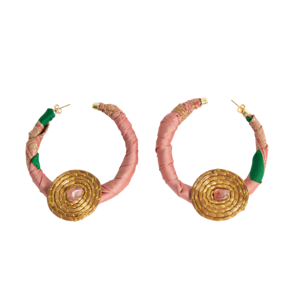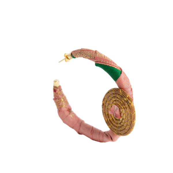 O brinco Chanti é uma peça encantadora e única, feita com uma combinação de seda e capim dourado rosa. Essa combinação de materiais traz um toque de moda e exotismo ao brinco.