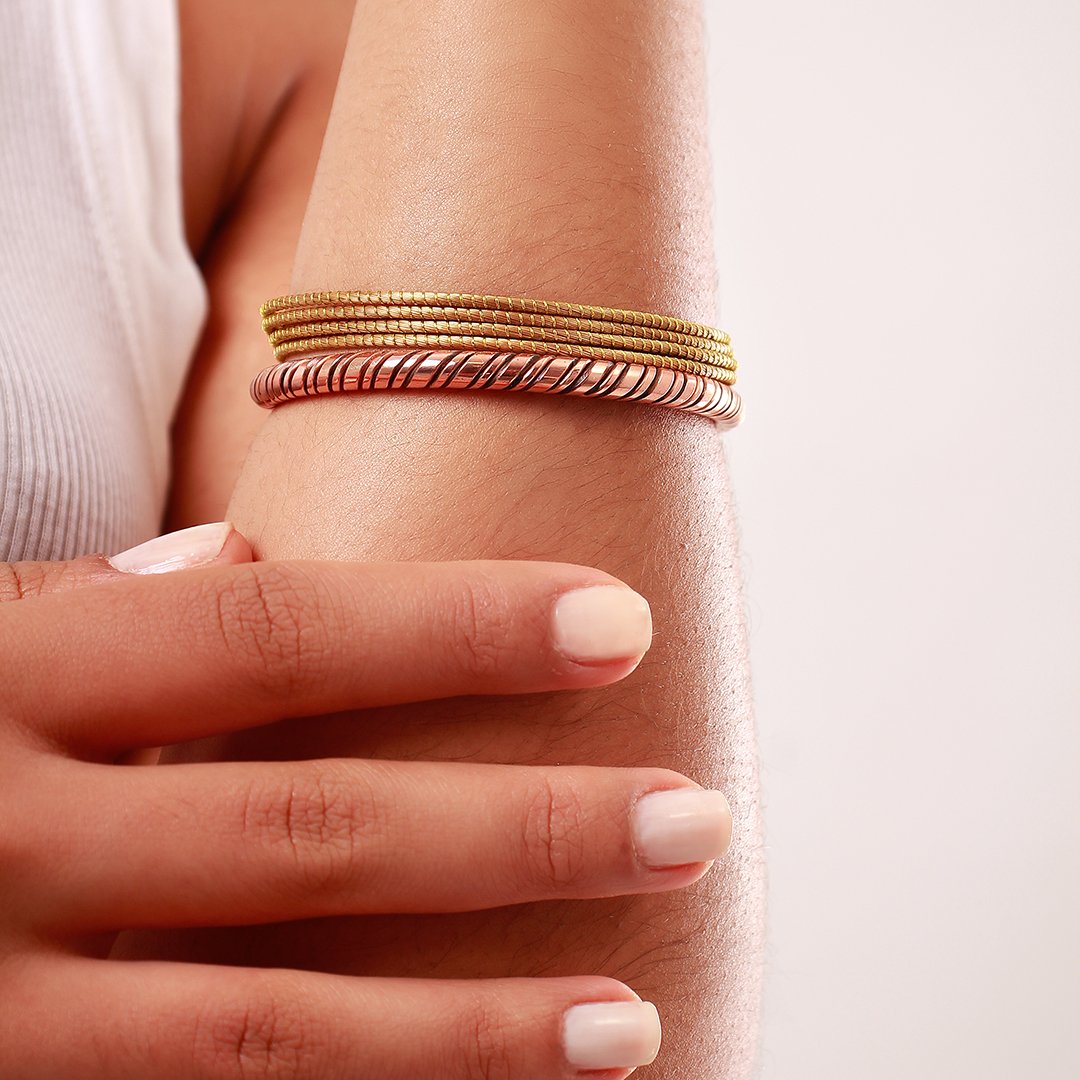 Na antiga África, o cobre era mais valioso que o ouro, particularmente apreciado pela sua cor e brilho. Extraído do solo, acreditava-se que protegia dos perigos da terra. Em diferentes partes do continente, um saber que foi globalizado, o cobre continua sendo usado para desinfetar feridas, esterilizar água potável e tratar dores e rigidez associadas a lesões antigas. Pulseiras de cobre adornavam e protegiam os braços e corpos de todos aqueles que as usavam. Nossos organismos também produzem este mineral, o cobre, inclusive, participa da produção dos hormônios da felicidade.