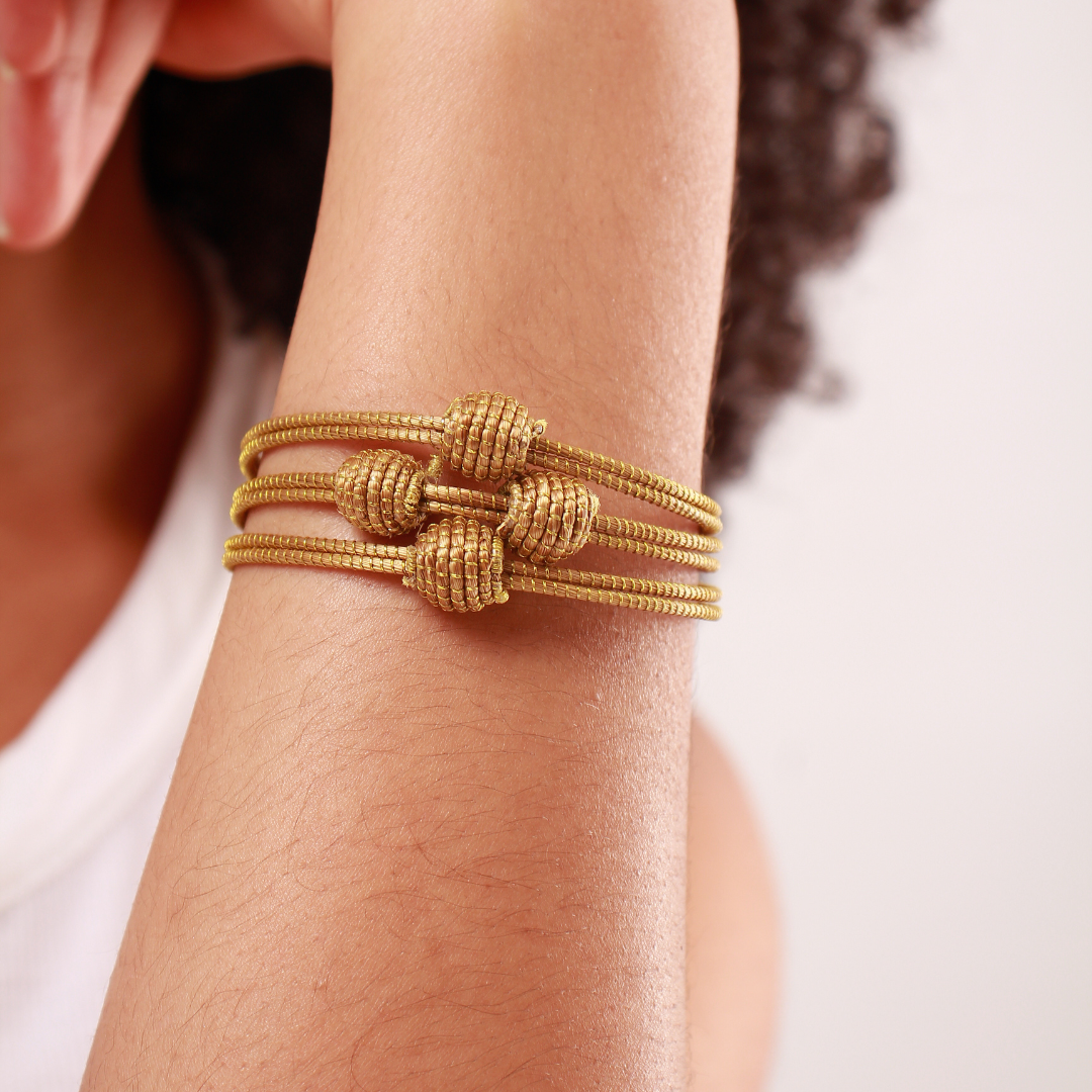 100% Plant Based, feito de uma planta rara que tem a aparência de ouro fiado e continua a brilhar depois de colhida. Forte, durável e flexível o suficiente para ser usado em acessórios.